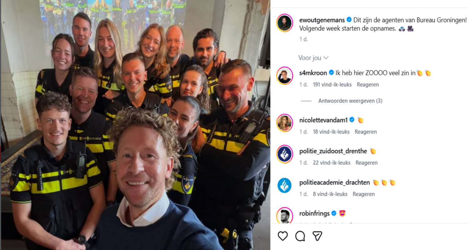 Via een selfie op social media laat Ewout zien wie zijn ‘collega’s’ worden tijdens de opnames. Daarbij schrijft hij: “Dit zijn de agenten van Bureau Groningen.” De draaidagen starten volgende week, waarmee de voorbereidingen officieel de volgende fase ingaan.