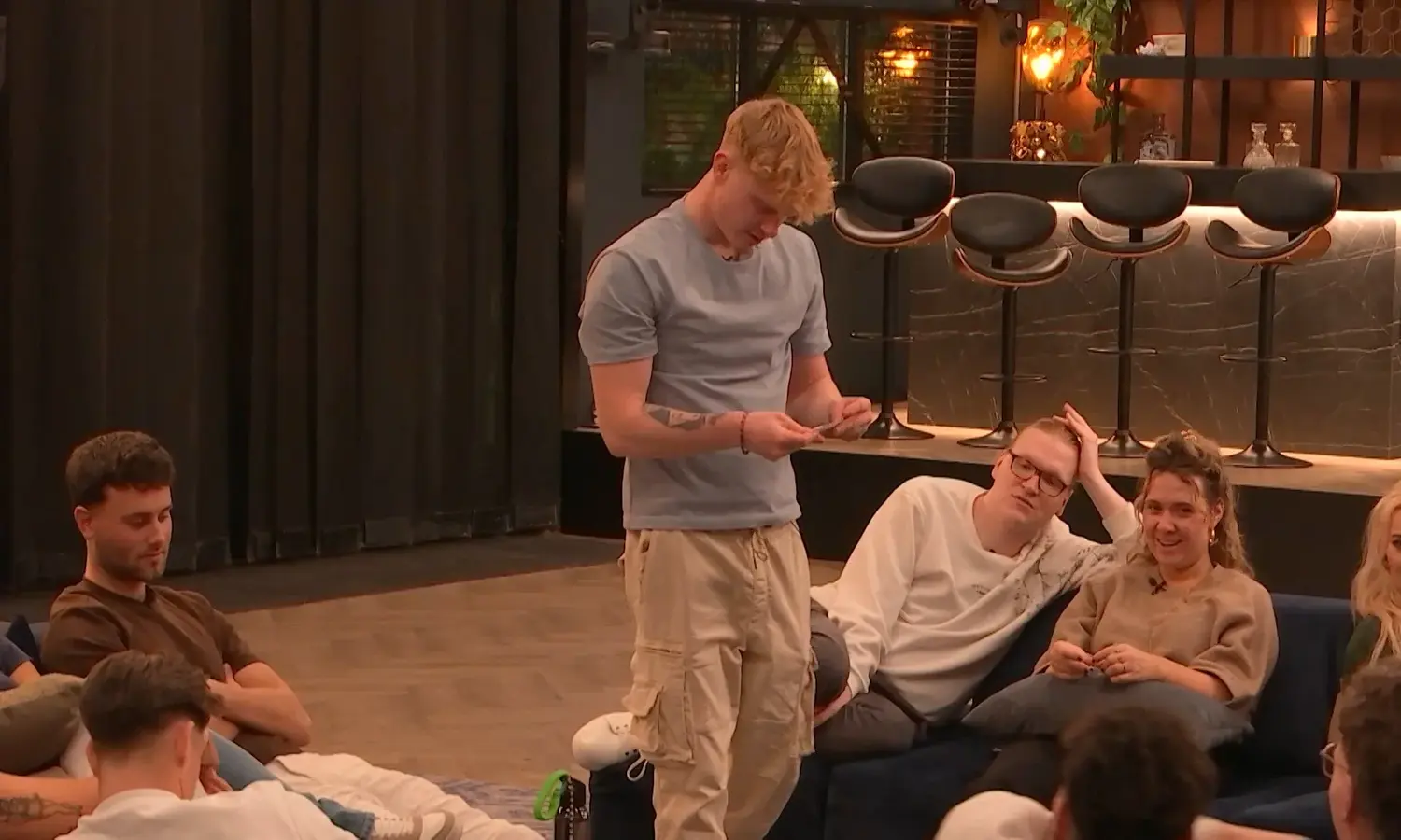 Wanneer Melvin de zwarte brief ontvangt, verzamelt hij de groep om zich heen en deelt hij het verdrietige nieuws zonder omwegen. “Mijn vader is overleden”, vertelt hij zichtbaar aangeslagen aan de andere deelnemers.